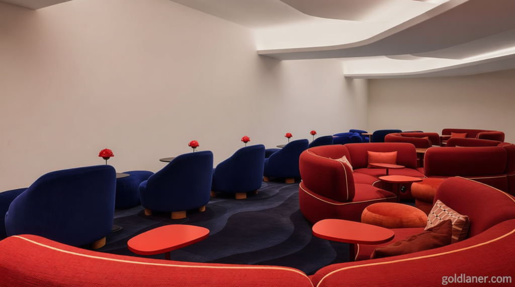 The Gallery, a highly sought-after area within the Clubhouse, has been restructured to optimize space and improve its view of the runway. Additionally, the Cinema has been reimagined as an immersive, intimate zone. Enhanced sound quality, royal blue armchairs, and red seating options now complement integrated charging points and Bluetooth headphones for a more enjoyable stay.